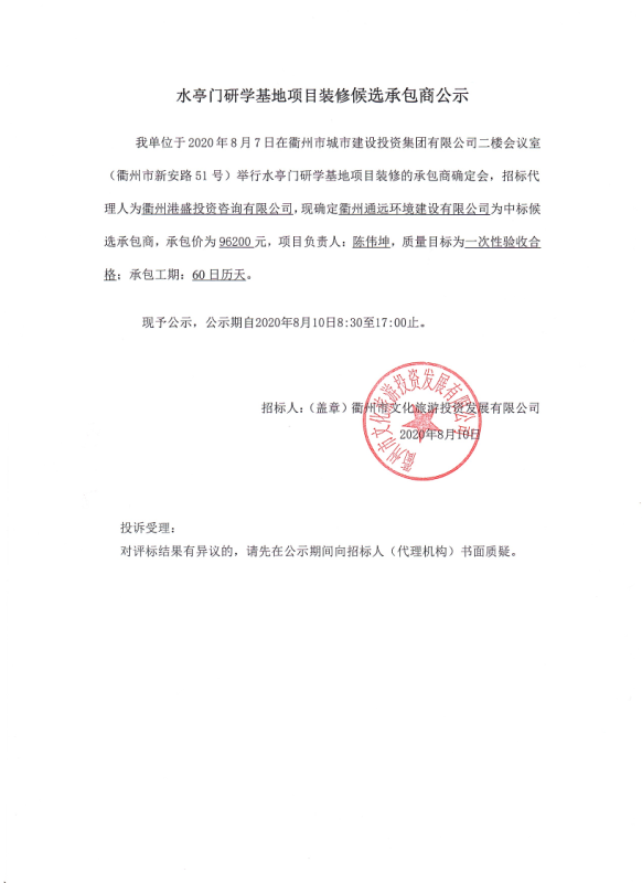 水亭門(mén)研學(xué)基地項(xiàng)目裝修候選承包商公示