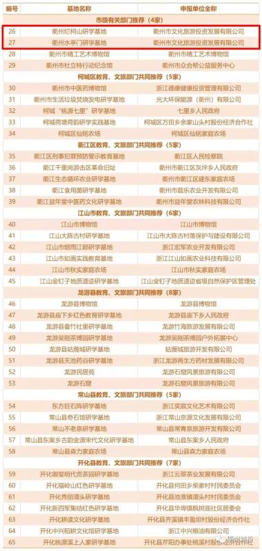 衢州中小學(xué)生研學(xué)實踐教育基地名單