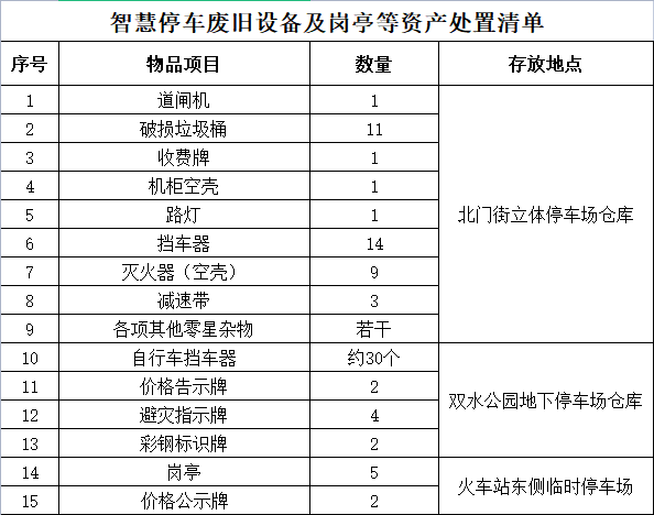 廢舊設備及崗亭等資產(chǎn)處置清單如下表: