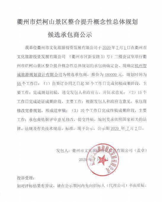 衢州市爛柯山景區(qū)整合提升概念性總體規(guī)劃候選承包商公示