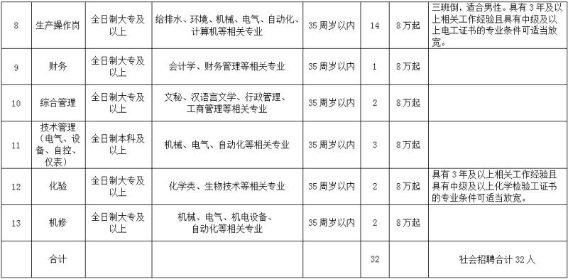 本次浙江衢州水業(yè)集團有限公司面向社會公開招聘工作人員32人。崗位、專業(yè)、年齡等其他條件要求詳見附表1。另2020年10月市城投集團下屬子公司部分核減崗位補招詳見附表2。