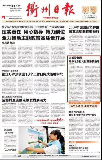 今天,衢州日?qǐng)?bào)頭版以《市城投集團(tuán):確保8.6億元投資落實(shí)落地》為題,報(bào)道了城投聚焦攻堅(jiān),全力以赴落實(shí)市委市政府?dāng)U大有效投資的工作要求。