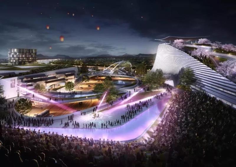 外觀既保留了傳統(tǒng)東方建筑“白墻黛瓦”、“前坊”、“望樓”等元素,又融入強烈未來感的建筑特征。