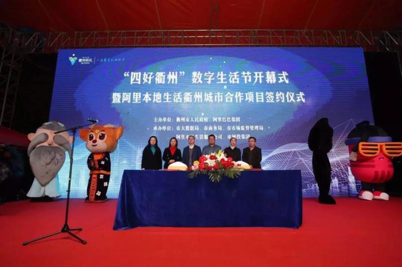 開(kāi)幕式現(xiàn)場(chǎng),播放數(shù)字經(jīng)濟(jì)宣傳視頻,并舉行了阿里本地生活衢州城市合作項(xiàng)目簽約。