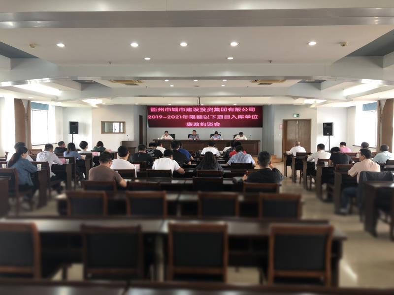5月16日,衢州市城市建設投資集團有限公司2019-2021年限額以下項目入庫單位廉政約談會召開,市城投集團副總經(jīng)理、紀委書記王堅威,紀檢監(jiān)察室主任戴勇軍,工程技術部經(jīng)理徐文以及各子公司代表,入庫單位代表等參加會議。