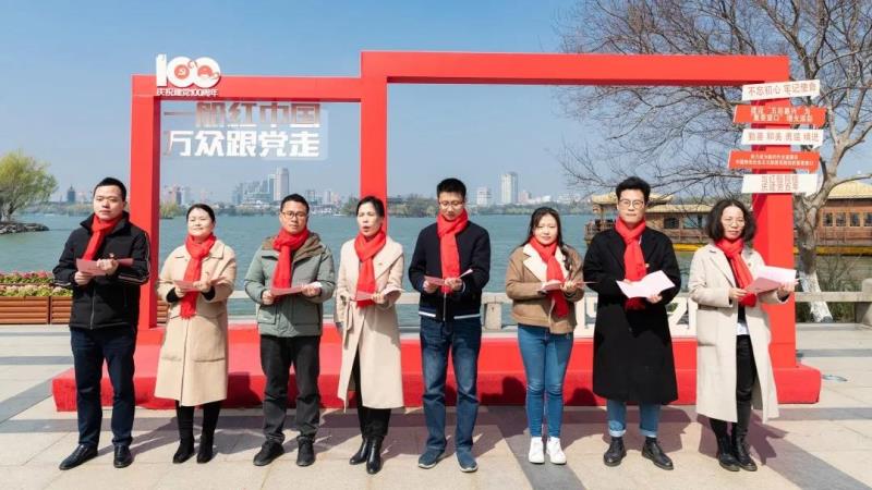 瞻“紅船”、溫誓詞、誦經典、唱紅歌、作宣講。在南湖邊,全體黨員滿懷崇敬之心,瞻仰中共“一大”紀念紅船,在講解員的帶領下,睹物思人品史,回顧建黨百年來波瀾壯闊的偉大歷程,切身體會“紅船精神”。在紅船旁,全體黨員面向黨旗,右手握拳,莊嚴宣誓,重溫入黨誓詞,接受了一次深刻的黨性教育和精神洗禮。