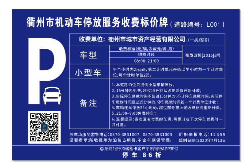 2021年5月1日起市區(qū)道路—上營街(衢江中路)縣西街(羅漢井附近)共24個新增道路泊位將納入停車收費管理。