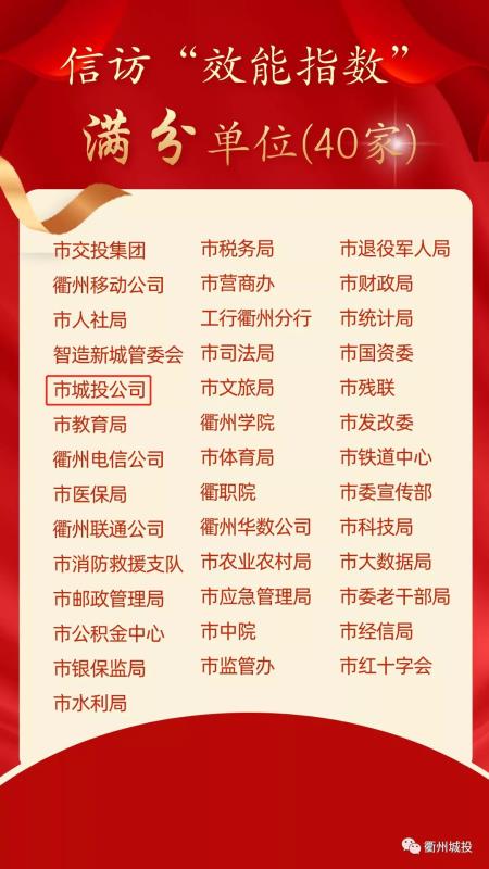 城投紅榜 | 集團(tuán)獲評(píng)第二季度信訪“效能指數(shù)”滿分單位