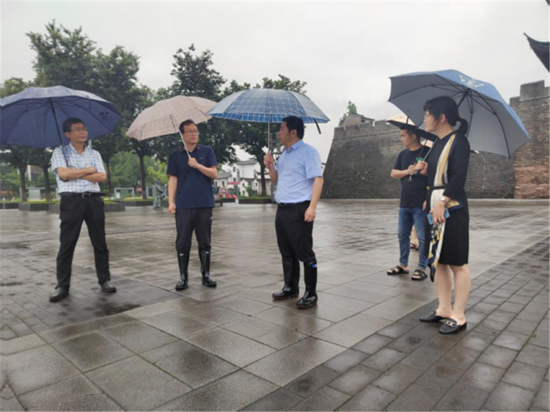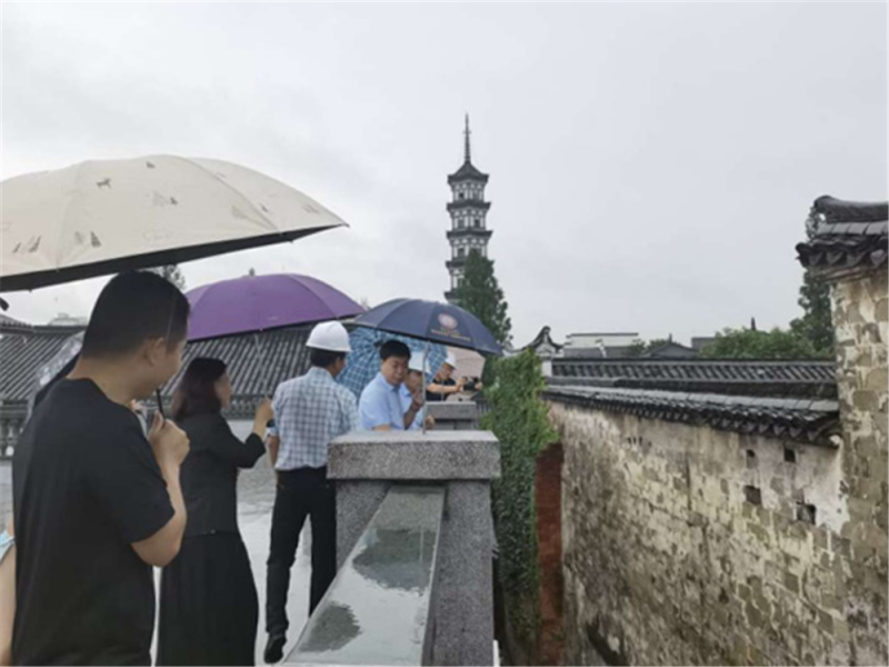 在水亭門歷史文化街區(qū),檢查組對在建項目、裝修商鋪以及江水上漲后的水亭門外廣場親水平臺進行了逐一檢查。保證項目施工安全,確保裝修臨時用電雨季安全,加強安保巡邏。